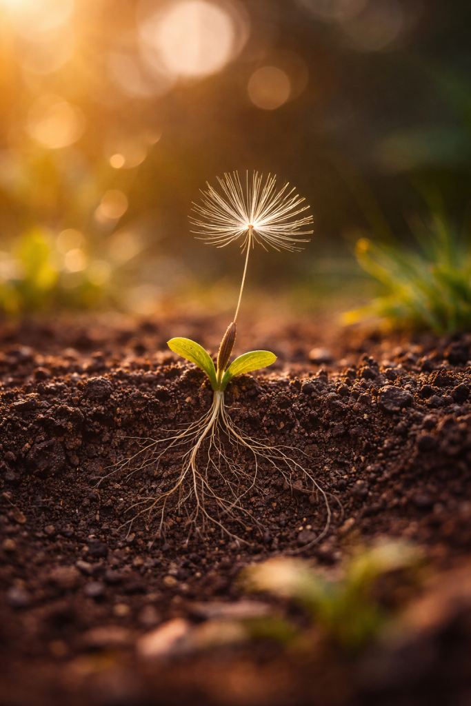Finally, there is yet another lesson in the dandelion’s design. Its roots.